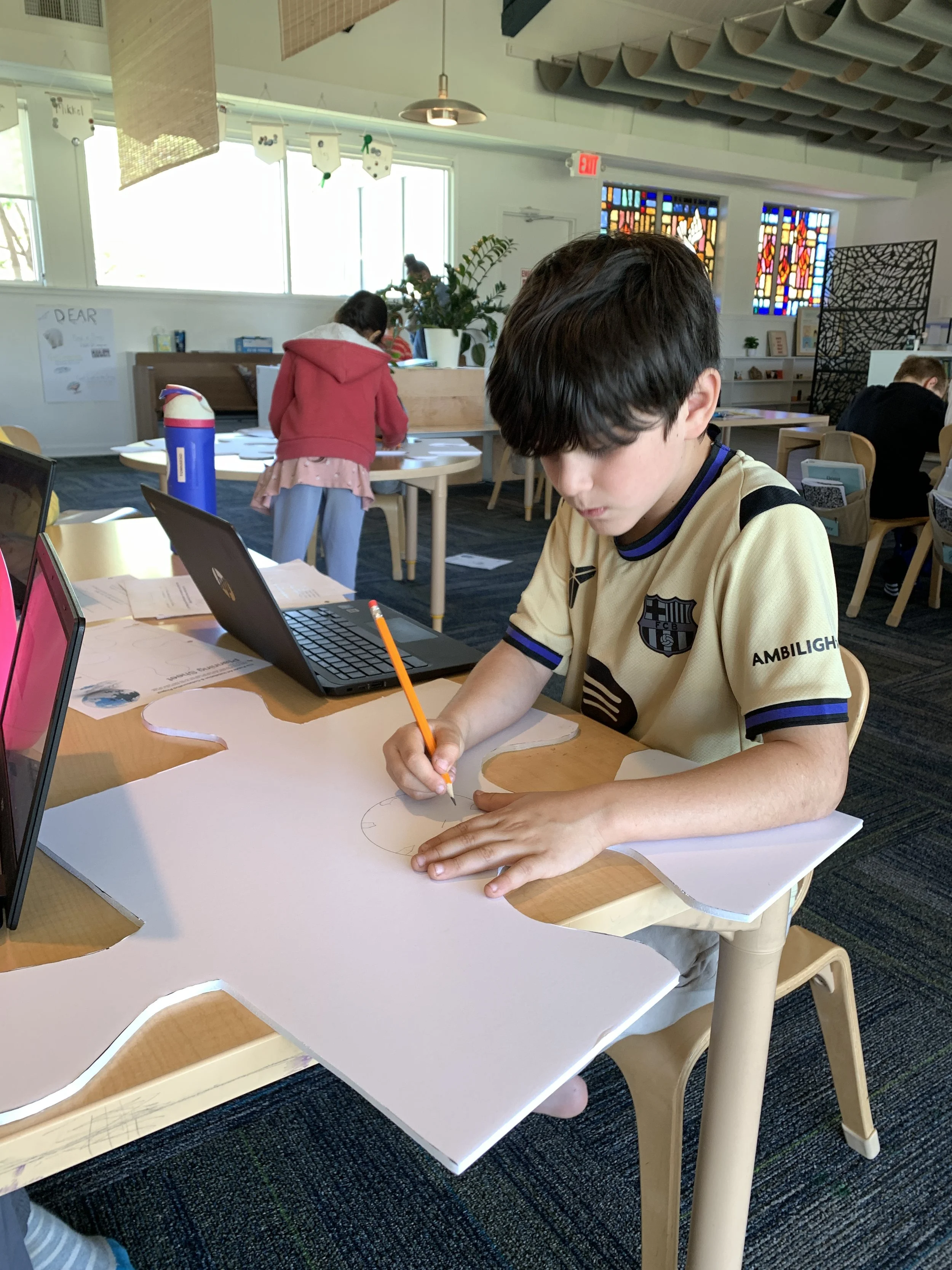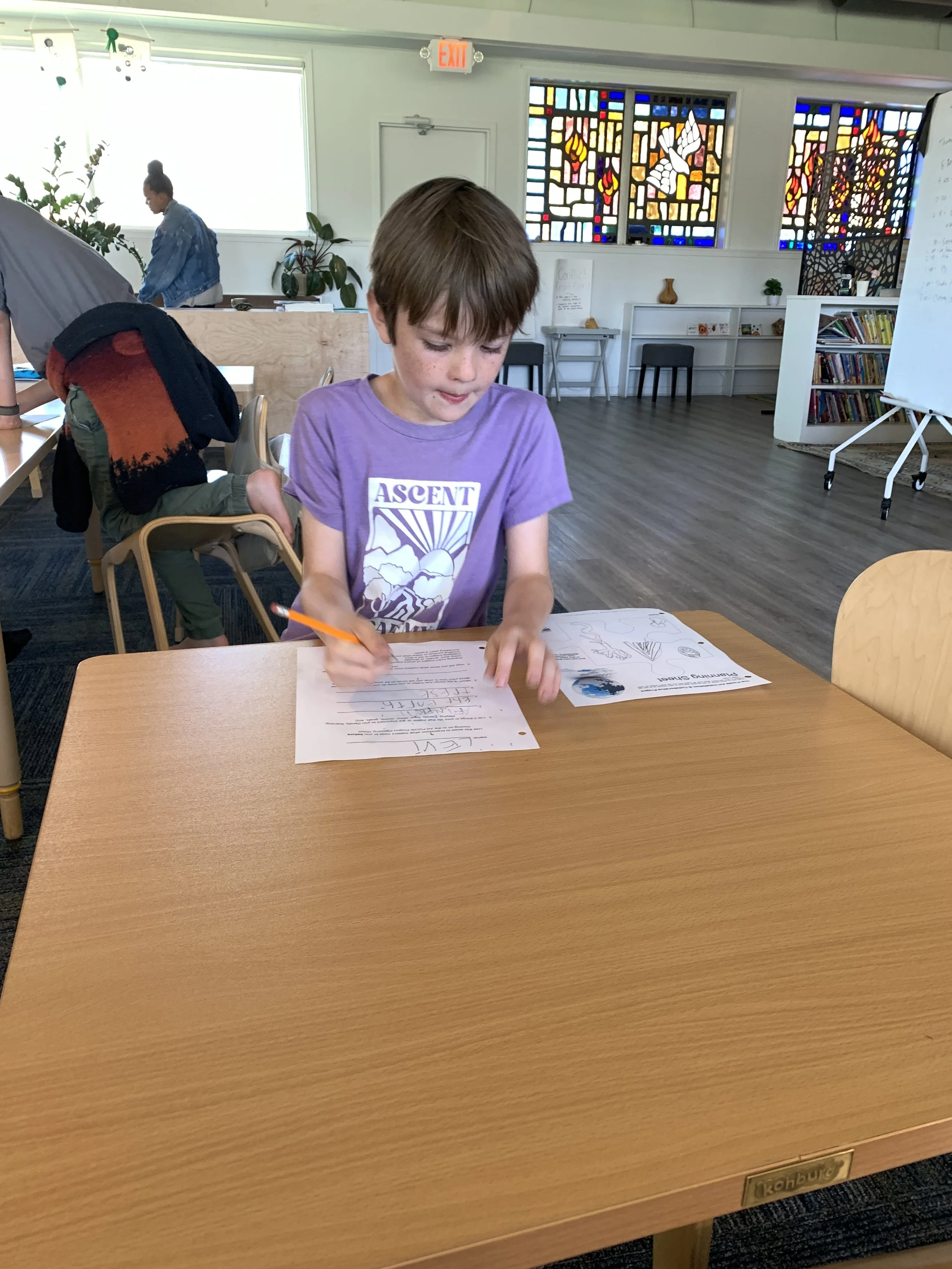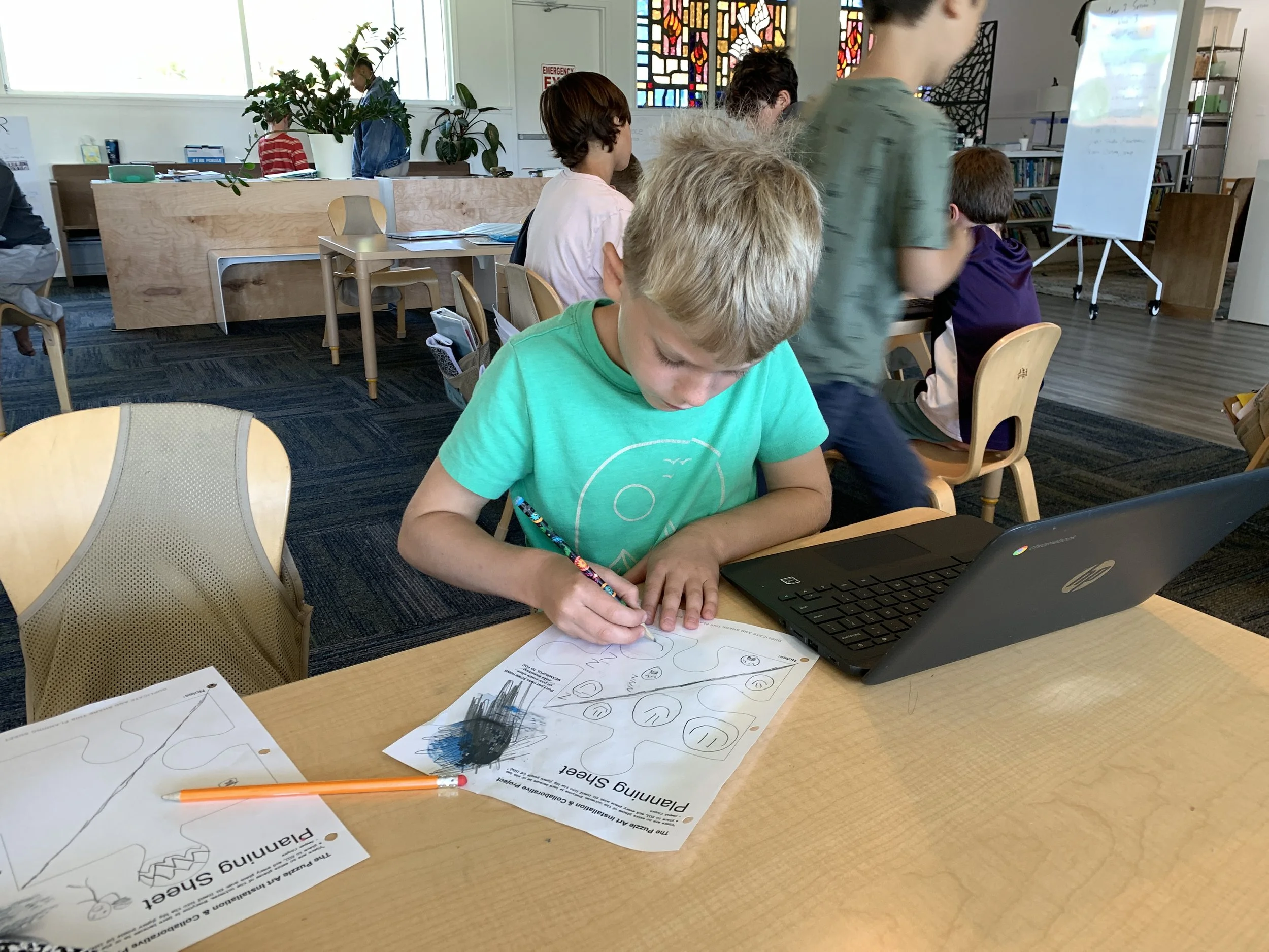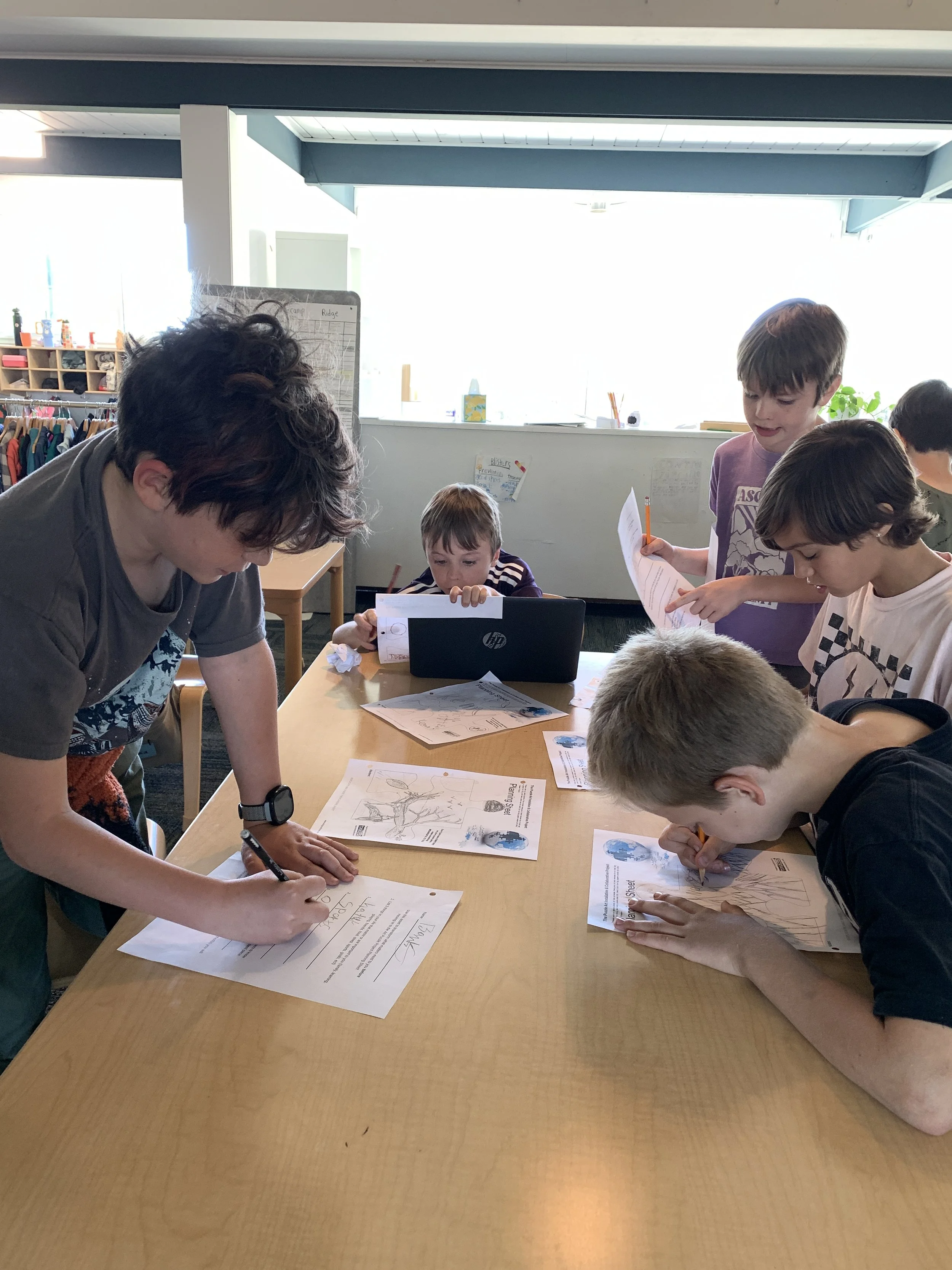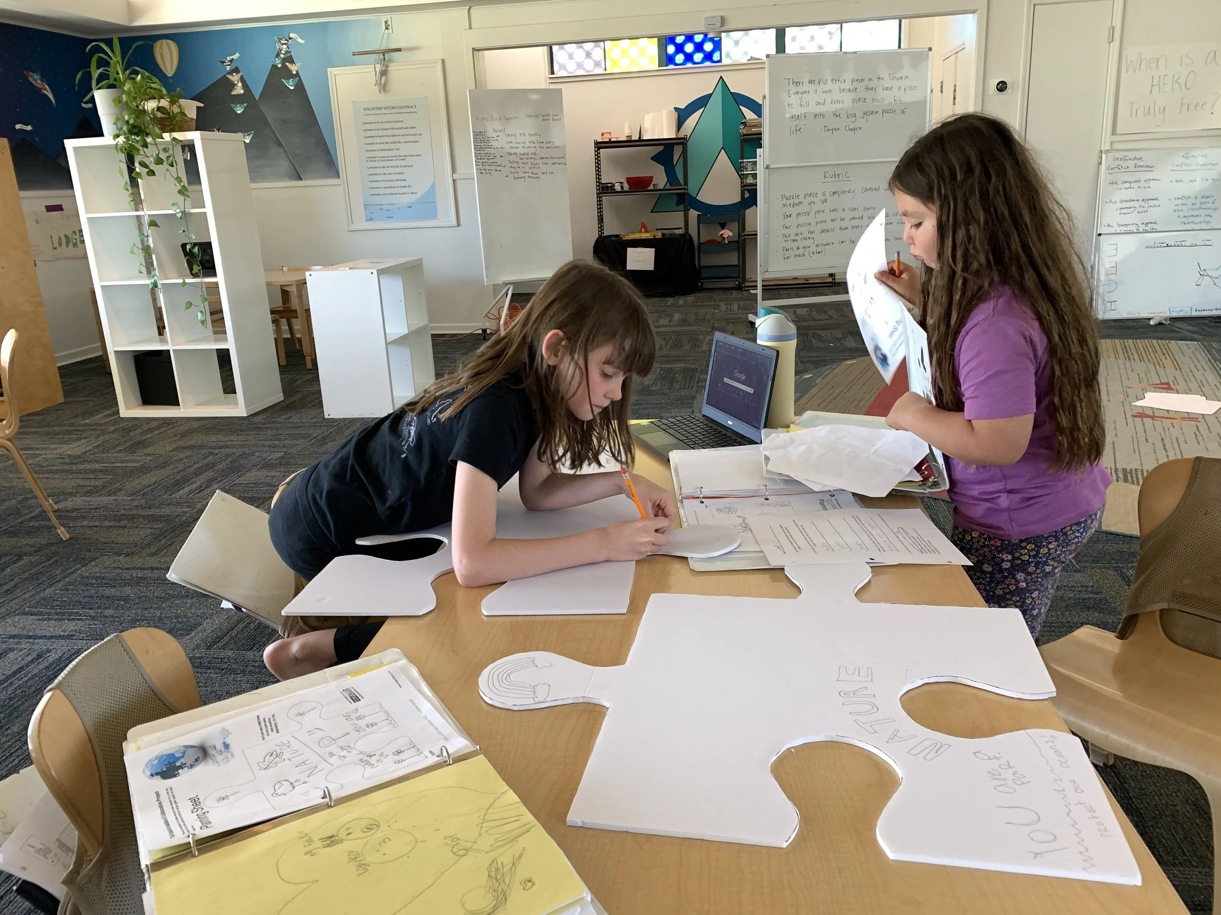 Discoverers returned to art this week! They started designing their large-scale puzzle pieces which will be assembled into a campus-wide giant puzzle installation. As they were reintroduced to the project, Discoverers were asked to consider if each person fits into the puzzle naturally or if they must change to fit in. One Discoverer said, “sometimes you have to change the way you look at a person or set boundaries” to find a way for each person to fit into the puzzle. Another stated that through changes she has undergone herself, she is “constantly finding new things that [she] love doing and new people in [her] life,” and these changes help her find different spots in the puzzle.